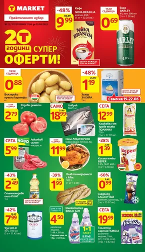 Добре дошли в Tiendeo, най-добрият ви избор за намиране на най-изгодните оферти, каталози и промоции на Супермаркети в Бургас. През месец декември 2025, на нашата платформа можете да откриете най-новите оферти от Т Маркет, една от най-популярните марки в сектора на Супермаркети в Бургас.